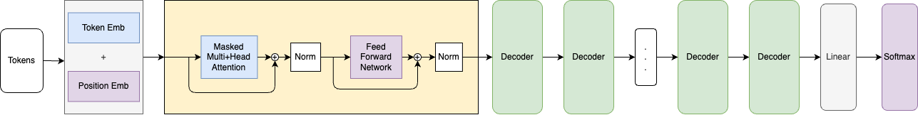 - Renamed GPT-1 main scheme files for clarity - Added new diagram files for attention, decoder, embeddings, and forward blocks (both .drawio and .png) - Removed deprecated files (gpt11.drawio, gpt1.svg) - Updated notebooks/gpt.ipynb with relevant changes